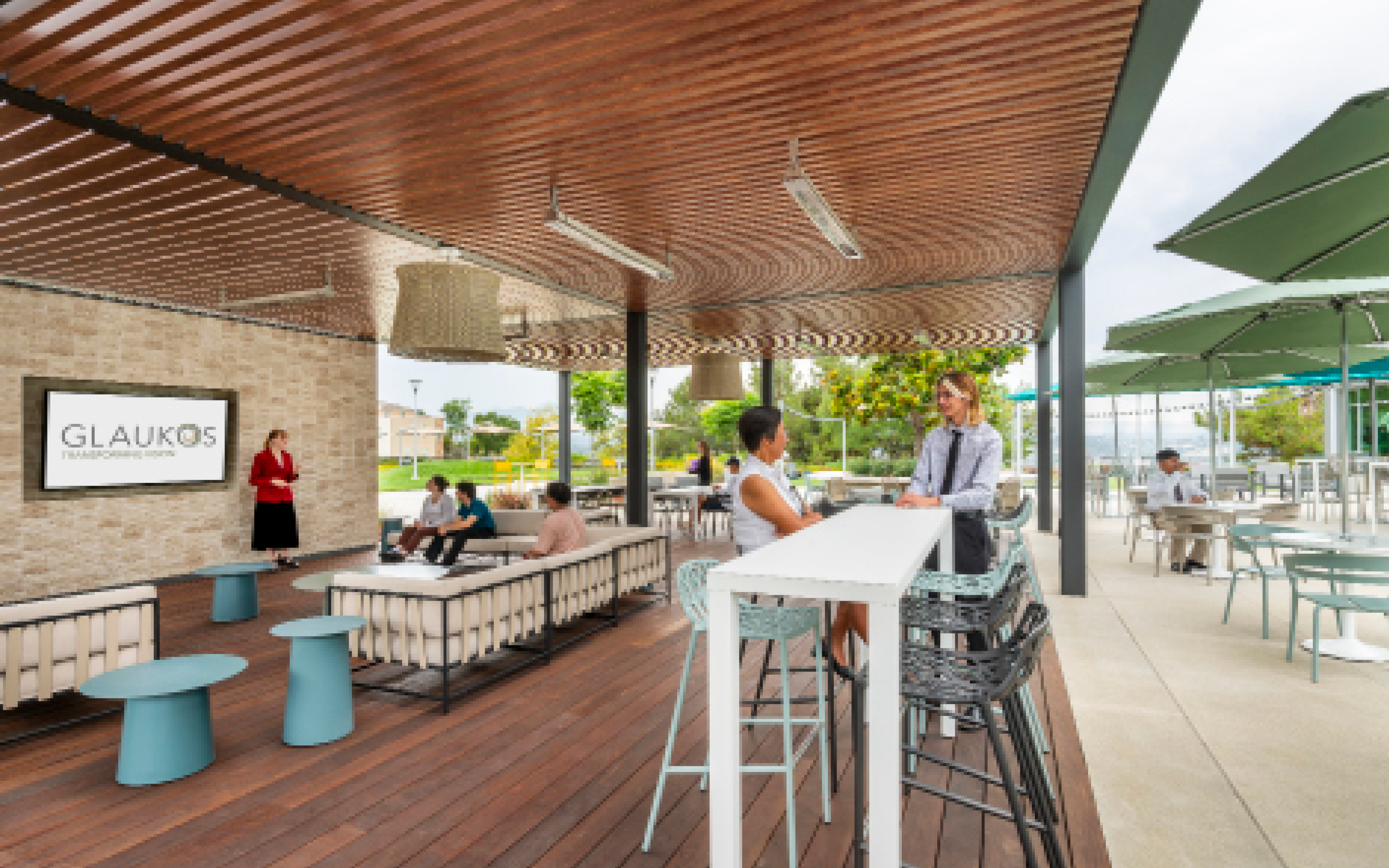 For Glaukos, a leader in the treatment of chronic eye diseases, landscape architects played a key role in helping turn a traditional Southern California low-rise office campus, surrounded by surface parking, into an office-lab headquarters that reflects the organization’s familial culture. Post-COVID, the firm wanted to create the type of workplace that made people eager to return to the office and give them a place to celebrate.