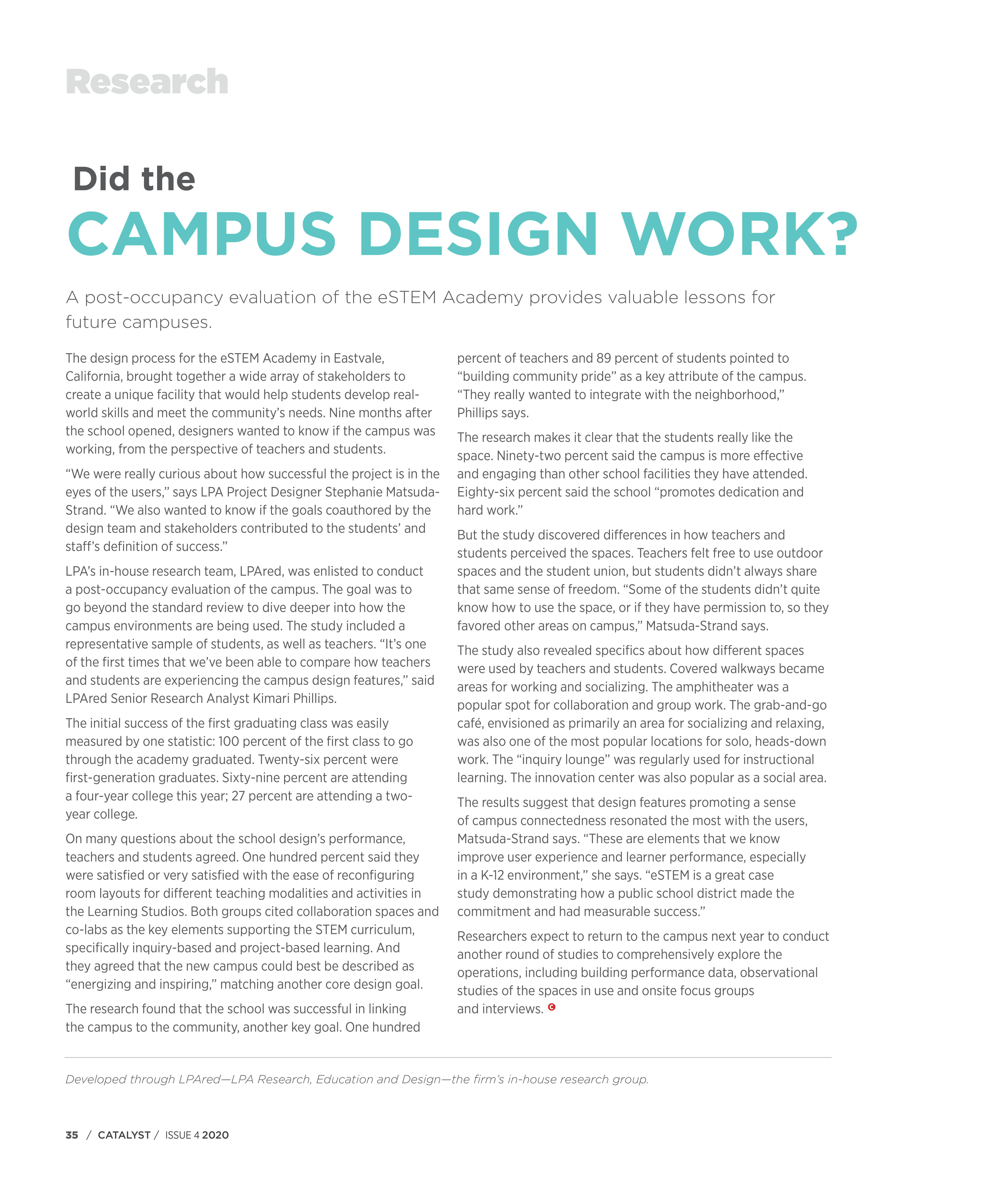 A post-occupancy evaluation of the eSTEM Academy provides valuable lessons for future campuses.